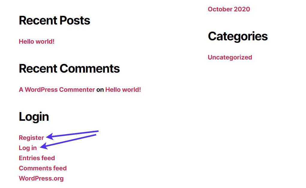 转到您网站的前端,查看注册链接的样子: