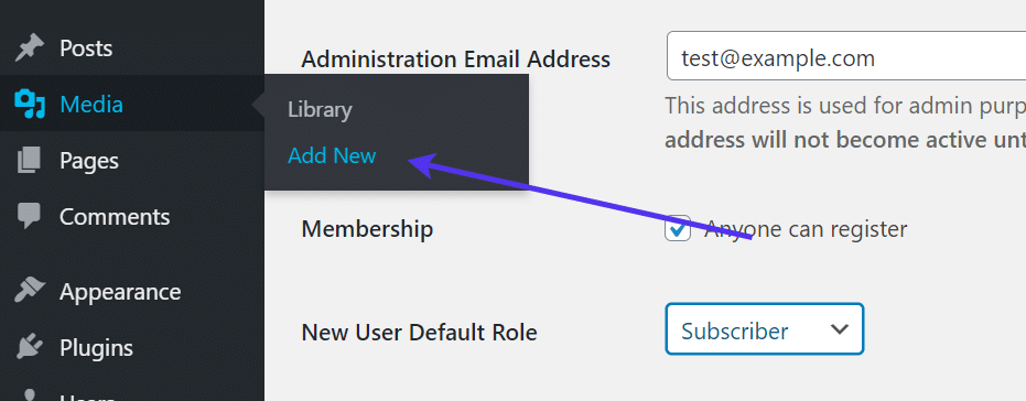 为此,请将徽标上传到您的WordPress媒体库。这是通过转到媒体 > 添加新的来完成的。