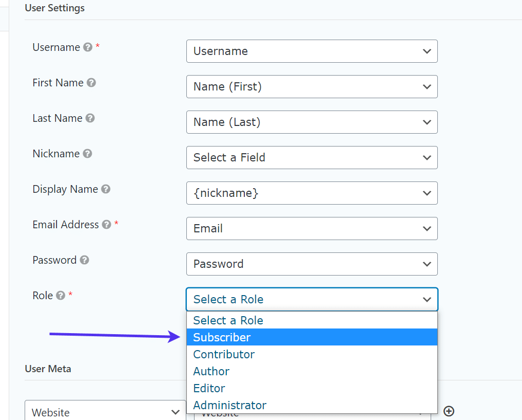 WordPress注册表单的用户角色