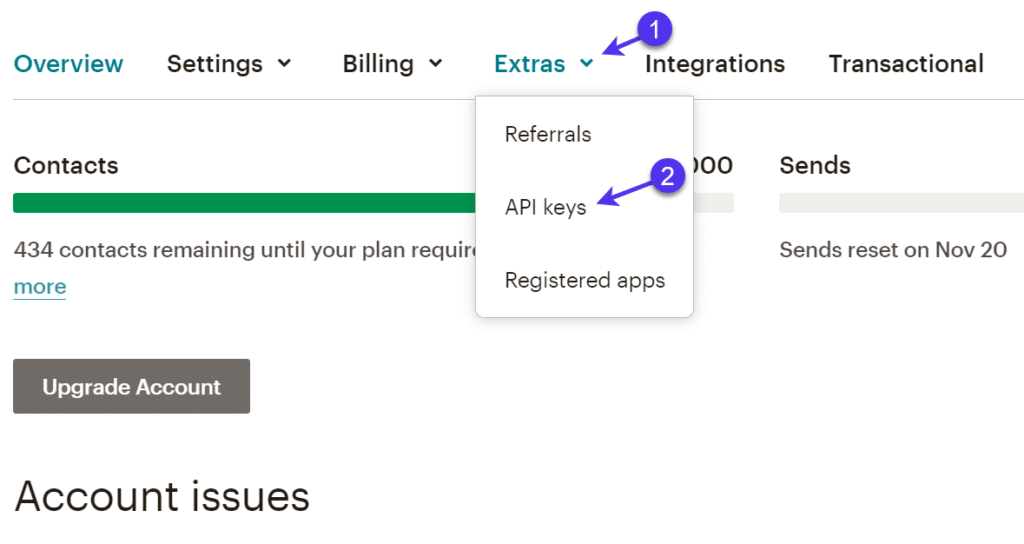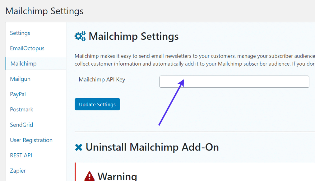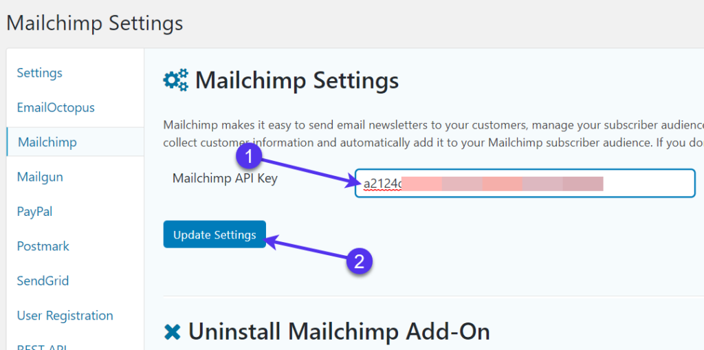 返回到WordPress仪表盘中的那些API设置。