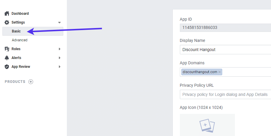配置应用程序后,转到“设置”>“基本”页面。