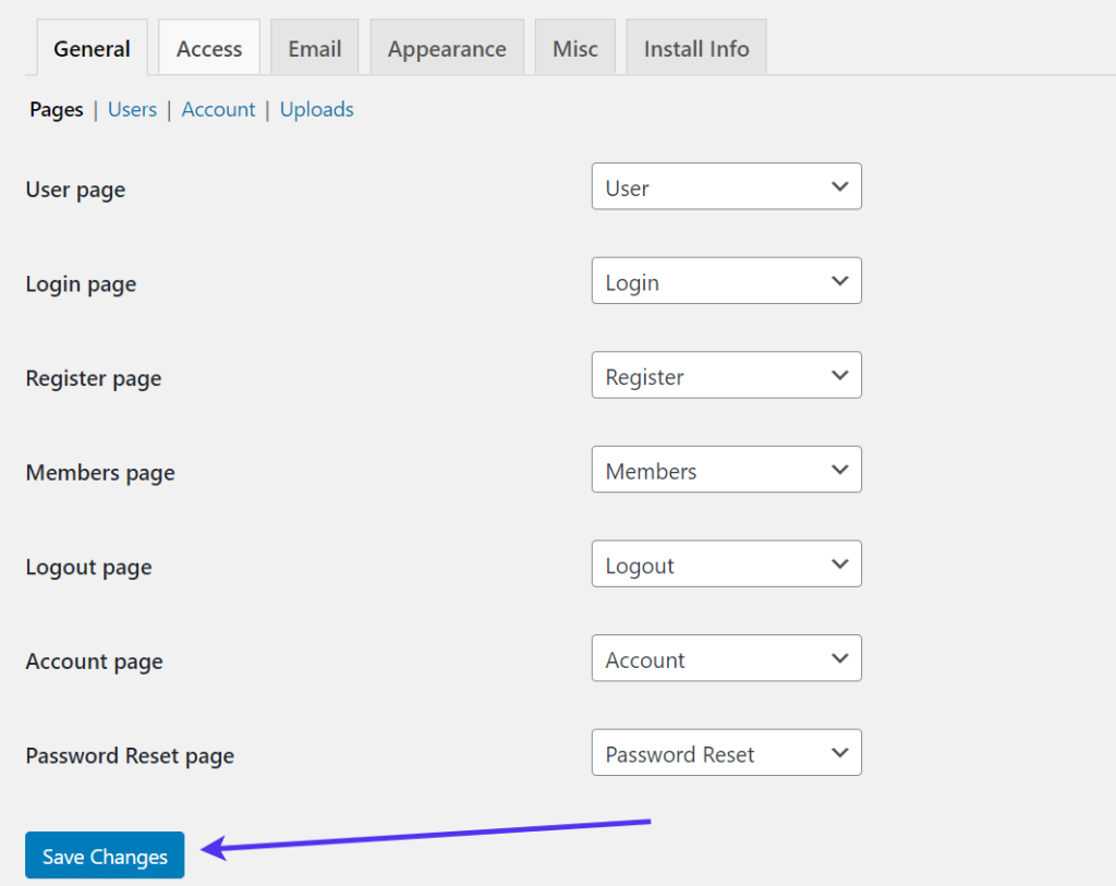 这会激活正确的页面并将您带到Ultimate Member插件的设置模块。