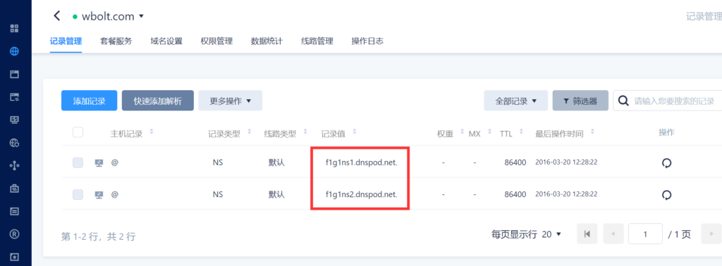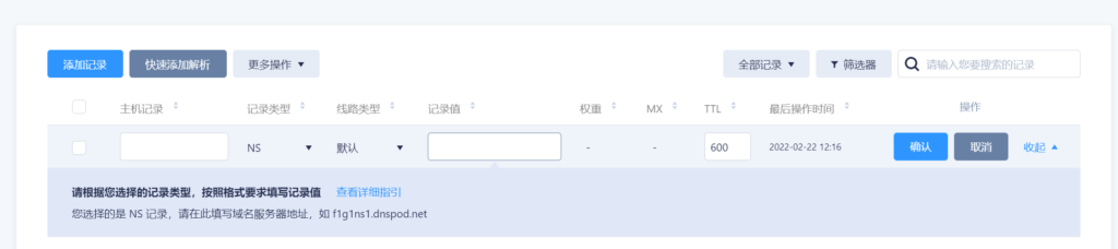 例如,如果您使用DNSPod提供的名称服务器,则您需要从您的DNSPod控制面板(而不是您的域注册商)编辑您的个人DNS记录: