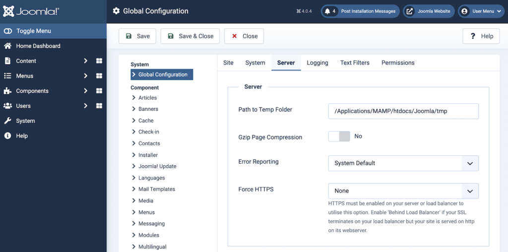 虽然Joomla确实有其优势,但它不像WordPress平台那样用户友好。特别是,Joomla仪表盘可能会因为其大量的菜单、子菜单和设置而令人困惑: