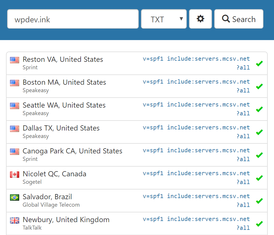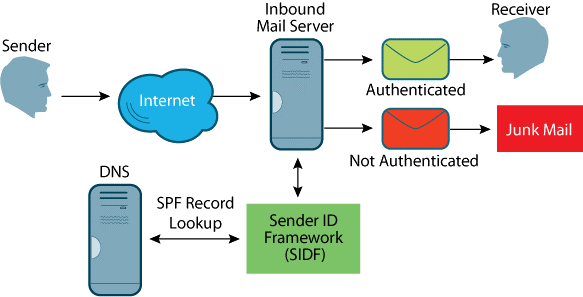 每当服务器收到电子邮件时,您的ISP将使用SPF记录来检查发件人的IP地址。假设此值与SPF记录匹配,则电子邮件将成功发送。
