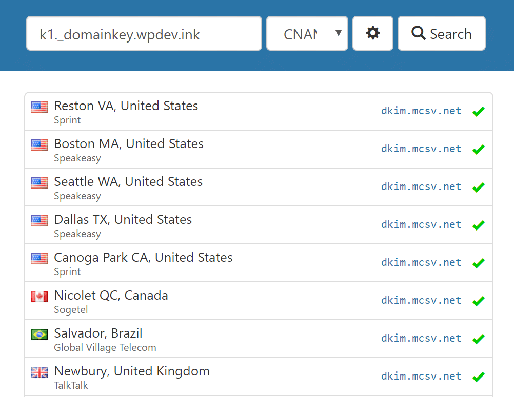 例如,您可以输入您的CNAME以检查全球范围内的当前值。