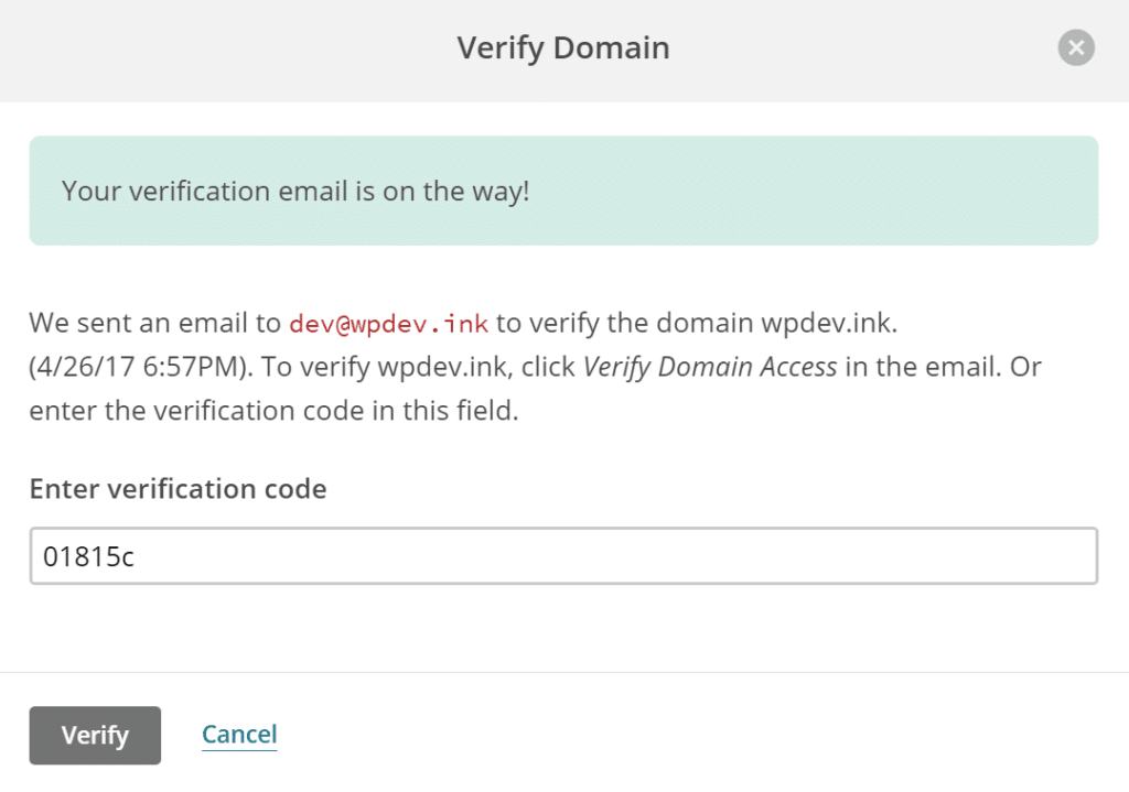 单击您在电子邮件中收到的验证链接或手动输入验证码。