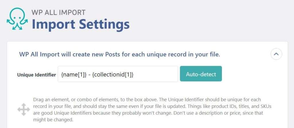 接下来,系统会要求您为文件中的文章定义一个唯一标识符。您可以单击“Auto-detect” 按钮生成ID: