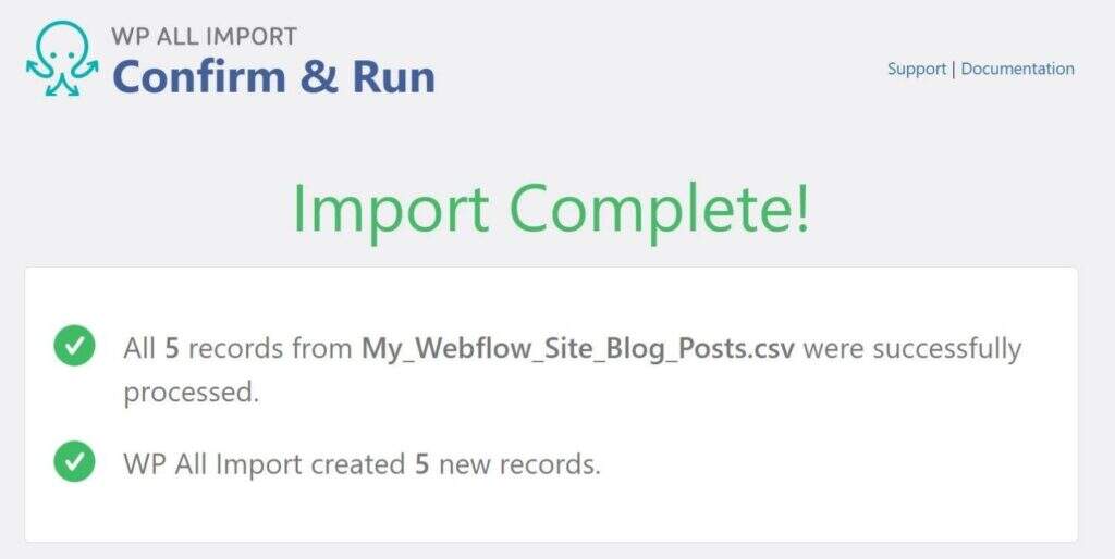 最后,您需要单击Confirm & Run Import按钮以完成该过程: