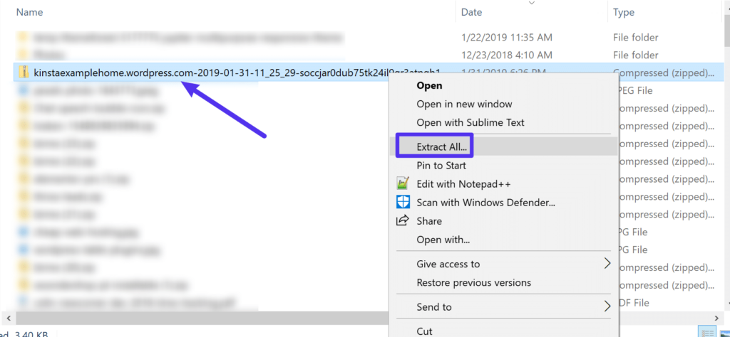 这会将ZIP文件下载到您的桌面。下载完成后,您需要解压缩ZIP文件。如果您使用的是Windows,则可以通过右键单击并选择“全部提取”来执行此操作: