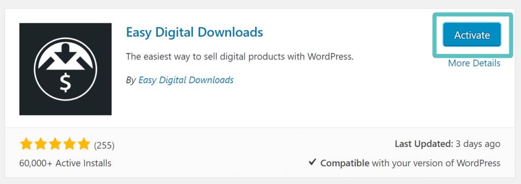 您需要做的第一件事是安装Easy Digital Downloads插件。您可以从WordPress插件库免费下载它,或者按照以下步骤从仪表盘中安装它。