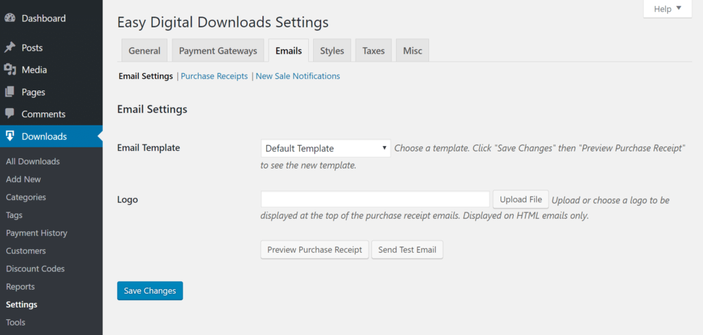 您还可以设置样式、税金和其他杂项设置。对于许多商店来说,这些实际上都不需要更改。这是EDD的一大优点,即开箱即用。但这里有一些额外的选项: