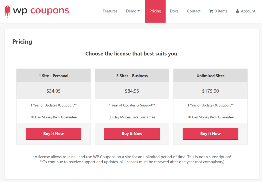 最后一步是为用户添加一种在您的WordPress网站上购买数字下载文件的方式。默认情况下,每次下载都会有自己的WordPress页面和购买按钮。但是你们中的很多人可能正在销售许可证,您可能只想要一个定价页面。我们建议使用像Easy Pricing Tables这样的插件。
