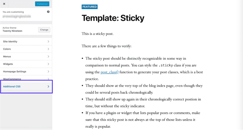 有两种方法可以隐藏作者姓名。要从您的帖子中手动删除作者信息,您需要编辑您网站的主题。导航到仪表板中的外观>自定义,然后向下滚动到自定义程序的附加CSS区域: