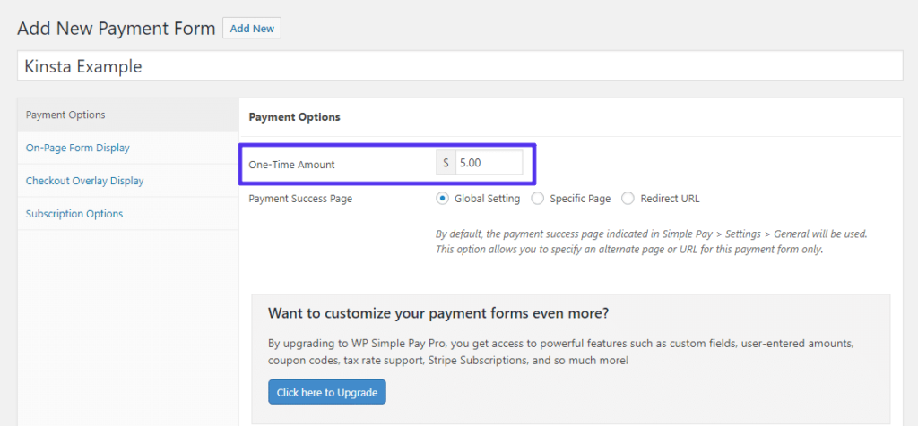 Payment Form本质上是您要使用的特定捐赠按钮。要创建一个,请转到Simple Pay Lite → Add New。