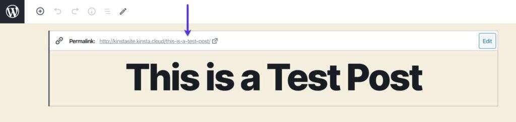 每当您创建或编辑文章时,您都可以为WordPress文章设置slug。如果您正在撰写新帖子,请务必先将其另存为草稿。单击标题框,您将看到一个包含带有编辑图标的固定链接URL的框。