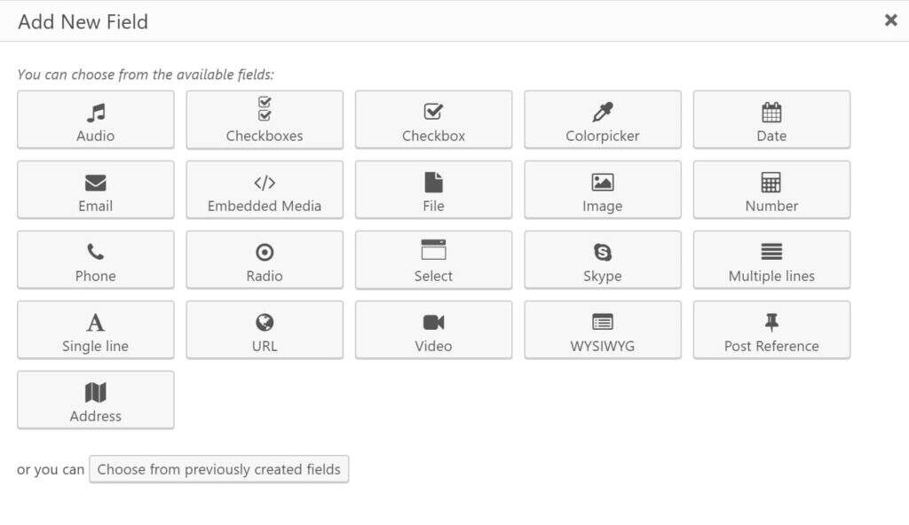 4. 单击Fields and Views,您将被带到我们可以添加的简码列表。滚动直到找到自定义字段列表的名称(在我的情况下为列表字段组),然后选择Production year。