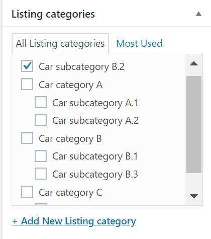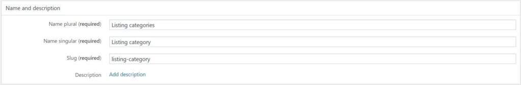 6. 返回到您的Listings文章类型,当您编辑其中一种帖子类型或创建新的帖子类型时,您可以开始添加您的分类术语。