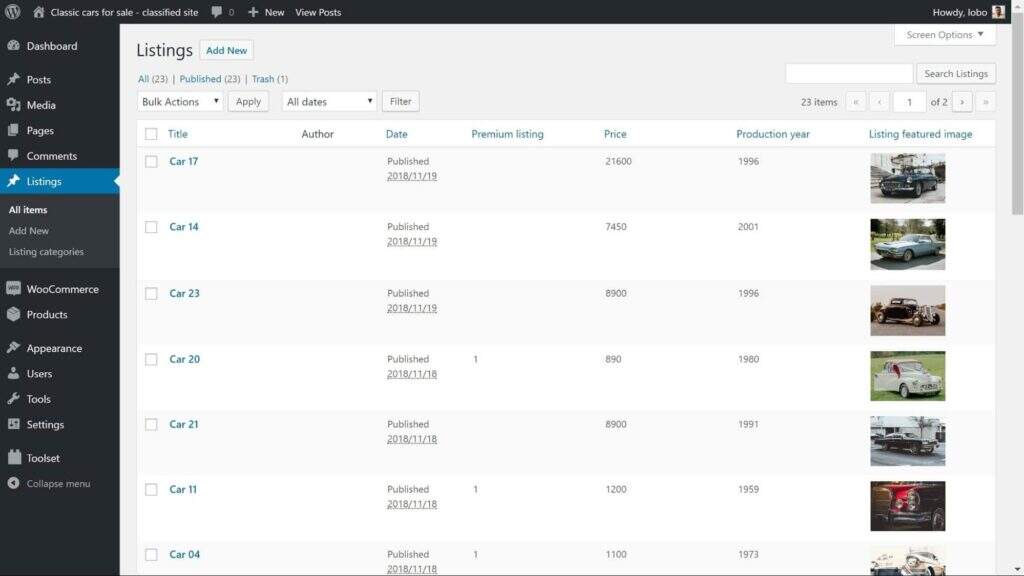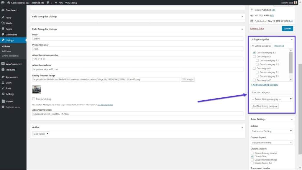 我使用工具集目录为经典汽车创建了我的目录网站,我将在本文的其余部分使用它作为示例。我使用Astra作为我的主题。