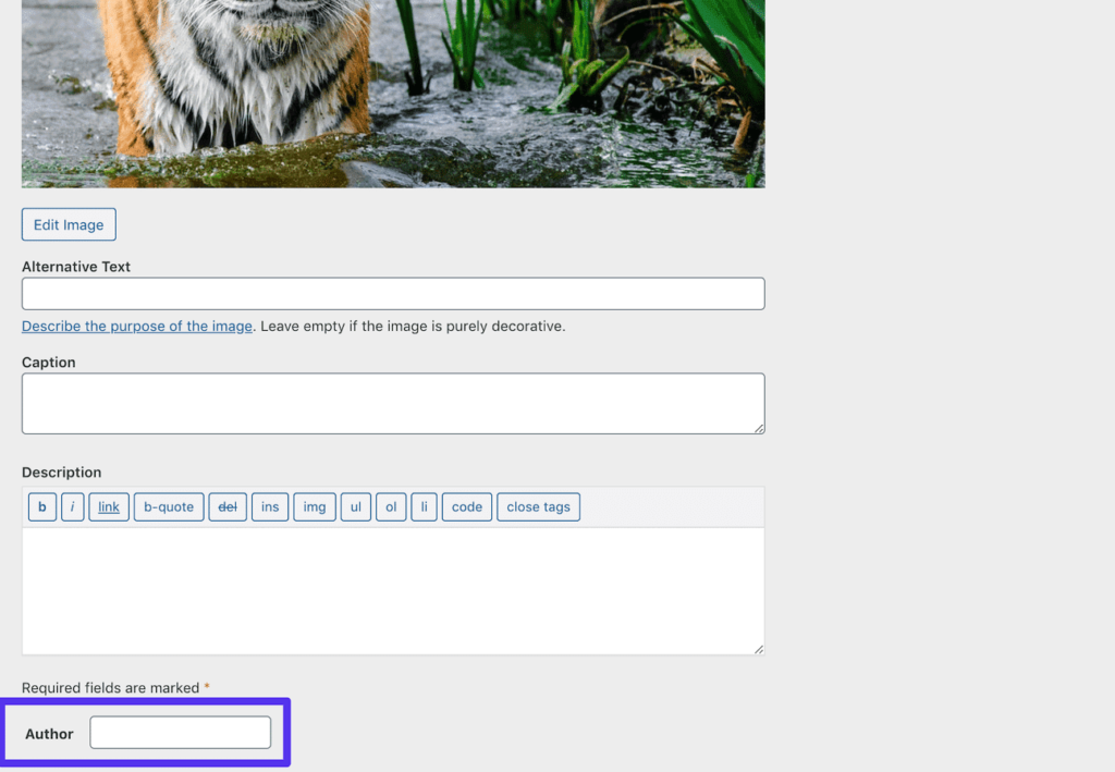 这将在“编辑媒体” 页面上显示一个新字段,您可以通过从媒体库中选择相关图像并单击“编辑更多详细信息”链接来访问该字段: