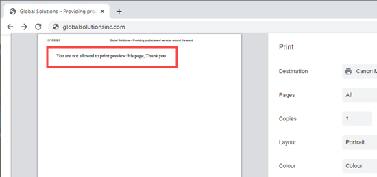 您还可以更改在有人尝试打印您的内容时显示的消息。该消息将在打印预览和打印输出本身中显示为这样。