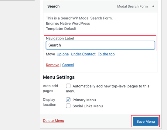 您需要将导航标签重命名为“搜索”,然后单击“保存菜单”按钮以保存设置。