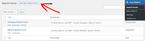 转到Ivory Search » Search Forms,然后单击“Add New Search Form Button”。
