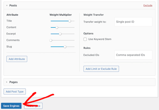 完成后,请确保单击“Save Engines”按钮以生成您的第一个搜索引擎。
