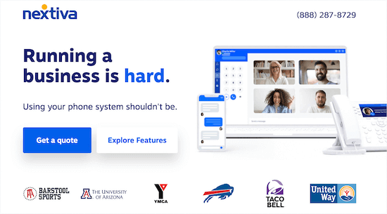 我们建议使用Nextiva,因为它是市场上最好的商务电话服务,被Taco Bell、YMCA、Buffalo Bills等品牌使用。