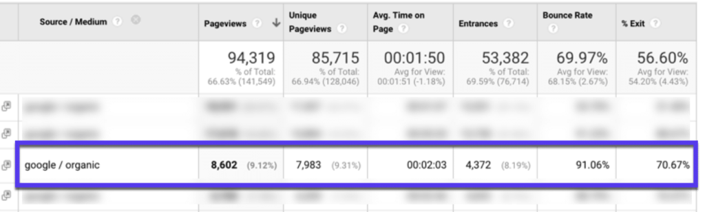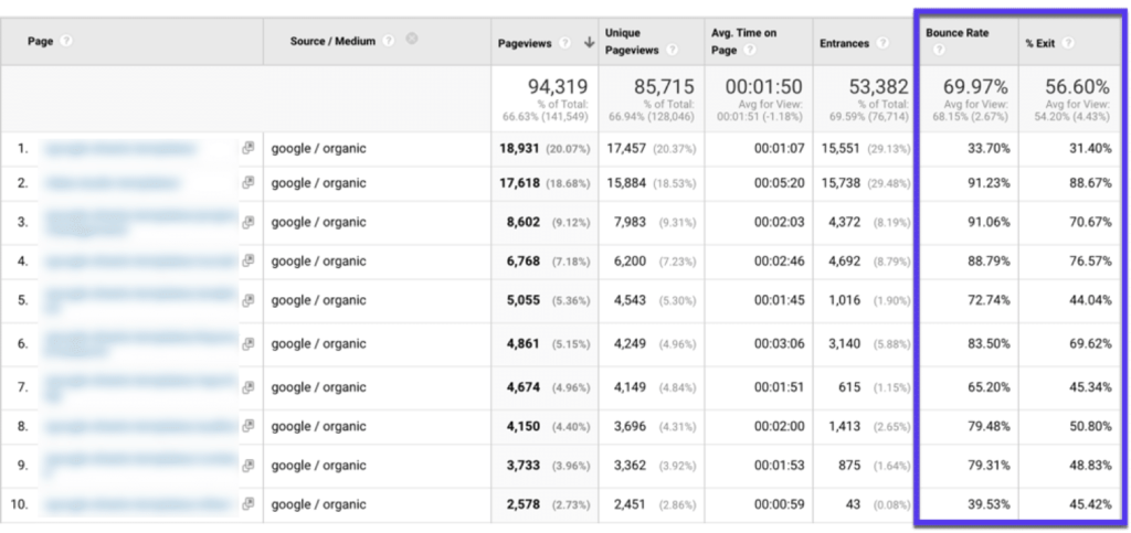 现在按浏览次数对您的数据进行排序,并注意Bounce Rate和%Exit列: