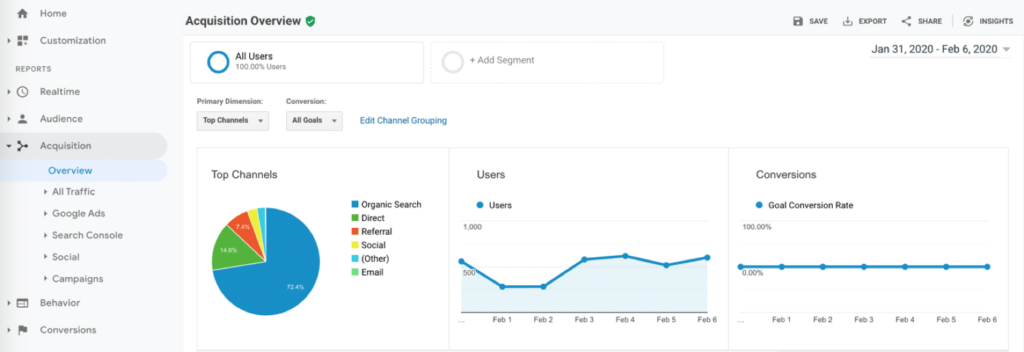 - 转化– 了解访问者如何在您的网站上转变为客户。