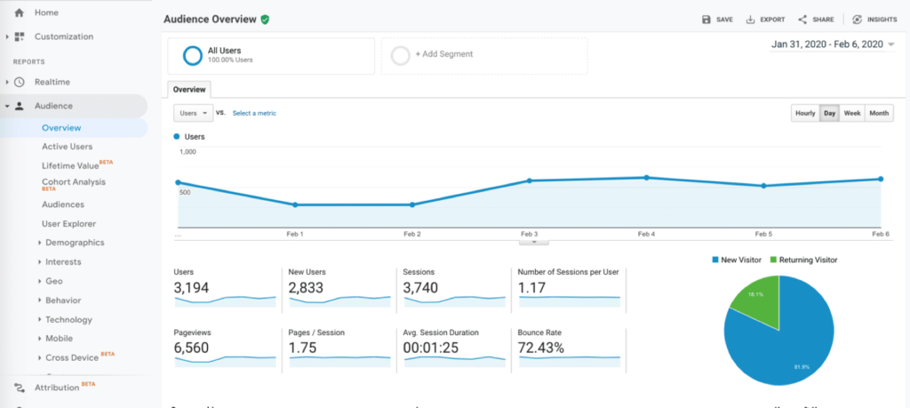 现在您已全部设置完毕,让我们探索一下您会在Google Analytics(分析)中找到哪些指标。