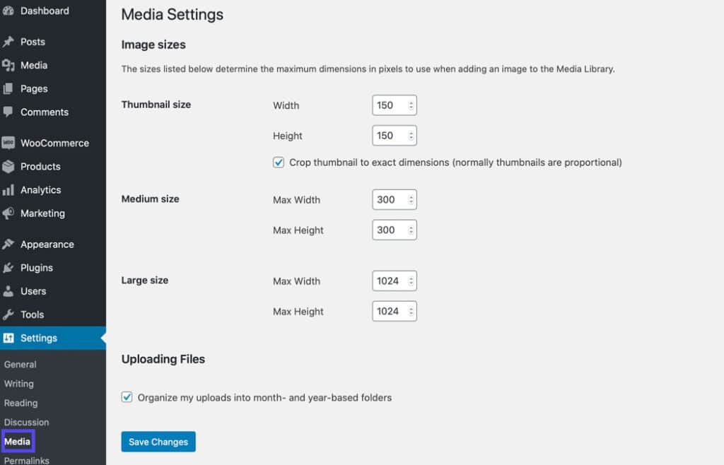 在您的管理仪表板中,转到“设置”>“媒体”。