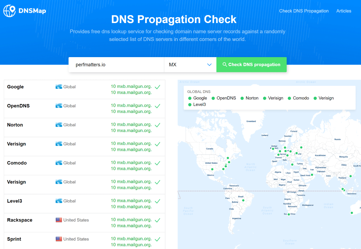 您还可以通过单击“Check DNS Records Now”按钮来检查Mailgun控制面板。