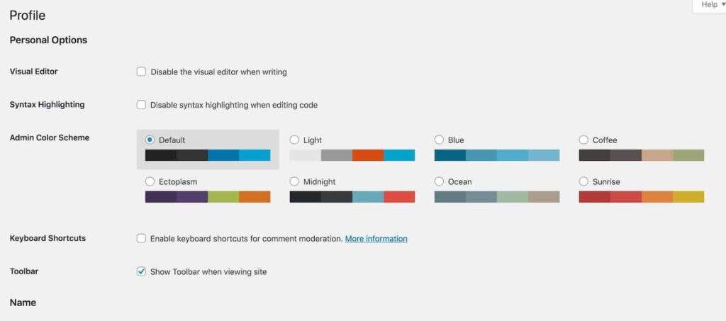 在WordPress中,转到用户> 个人资料以访问您的个人资料页面。