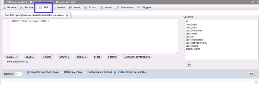 如果操作不当,直接从phpMyAdmin编辑和操作表格可能会破坏您的网站。