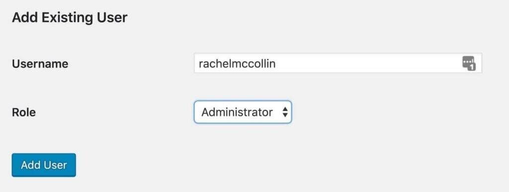 然后,您可以根据需要创建一个新的空白站点来替换它。为此,请单击站点屏幕中的添加新站点,然后按照创建新站点的说明进行操作。然后通过单击站点屏幕中其名称下的编辑链接转到站点编辑屏幕。单击用户选项卡并使用添加现有用户部分中的字段添加具有站点管理员角色的用户。