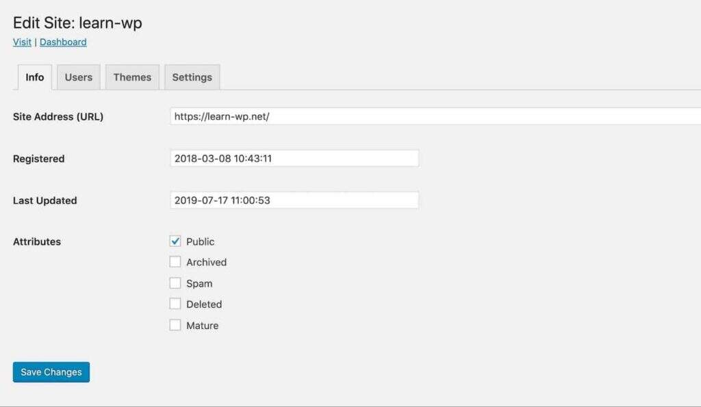 如果您想更改网络中某个站点的域名,您可以通过Network Admin > Sites执行此操作。只有网络管理员可以执行此操作。