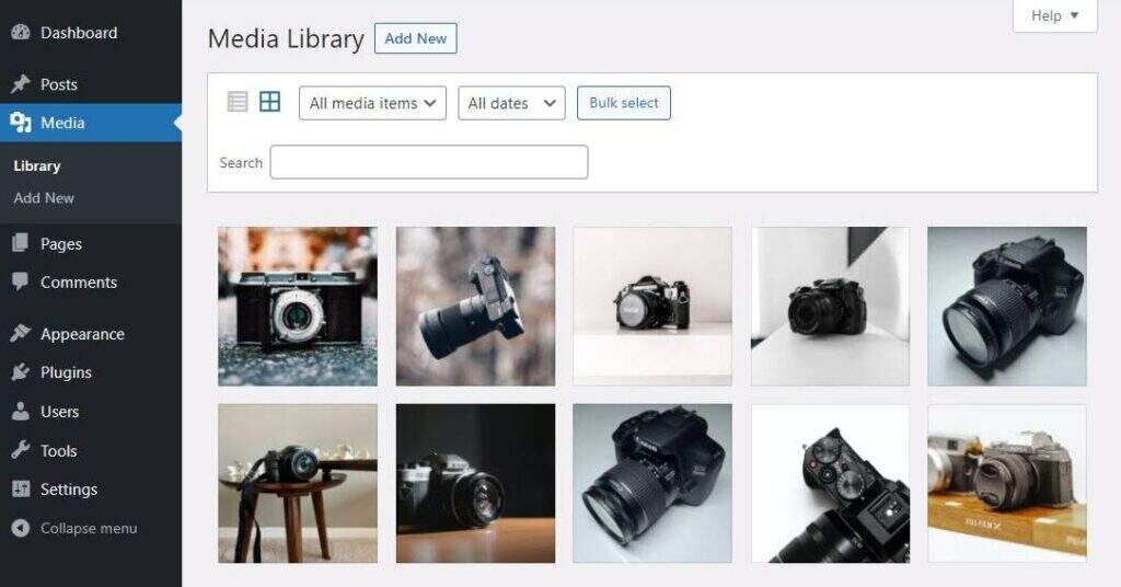 就您的管理面板而言,WordPress将您上传的图片存储在媒体库中。您可以通过将鼠标悬停在媒体选项上并单击库来查看所有上传的图像。