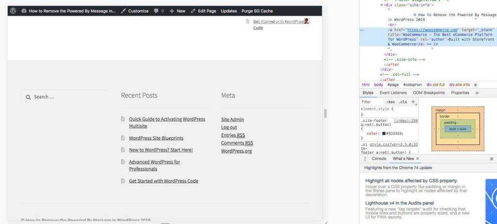 现在,当您检查您的网站时,您会发现页脚信用已经消失:
