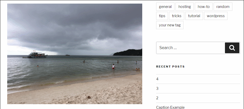 就是这样!您应该会在WordPress编辑器中的图像下方看到您的说明文字,并且您还会看到它出现在前端: