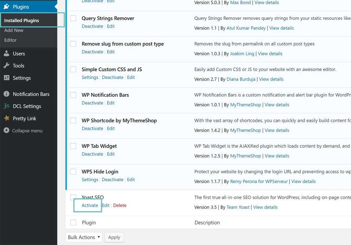 wp plugin activate wordpress-seo