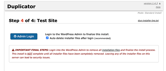 Duplicator软件包也包含您的WordPress安装。这意味着您无需在新域上安装WordPress。