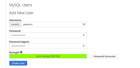 接下来,为您的新用户提供用户名和密码,然后单击“Create a user”按钮。确保在安全的地方记下用户名和密码。