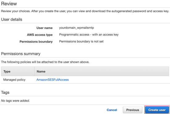 Amazon SES是一种专为企业电子邮件设计的SMTP服务。这是一个很好的解决方案,可以仅向您和您的团队发送WordPress通知电子邮件,也可以向大型邮件列表发送电子邮件通讯。