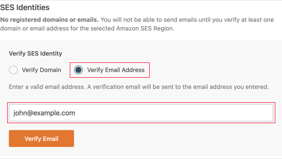 如果您只计划在WP Mail SMTP中使用单个电子邮件地址,那么验证您的电子邮件地址是一个不错的选择。