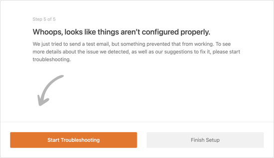 如果出现问题,您将看到一条消息,内容为“Whoops, looks like things aren’t configured properly”。您需要单击“Start Troubleshooting”按钮来修复错误。