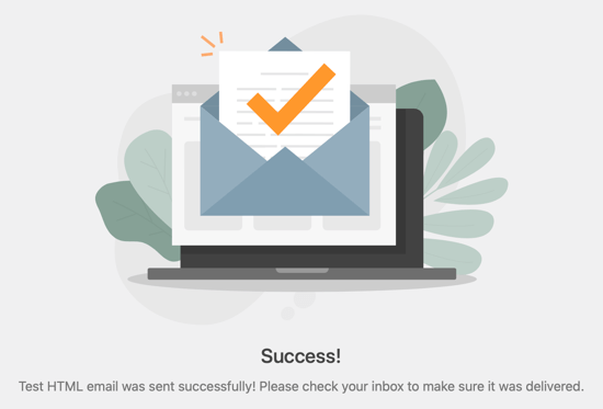 WP Mail SMTP现在将检查您的邮件程序配置。如果一切都按预期工作,那么您将看到一个带有消息“Congrats, you’ve successfully set up WP Mail SMTP!”的屏幕。