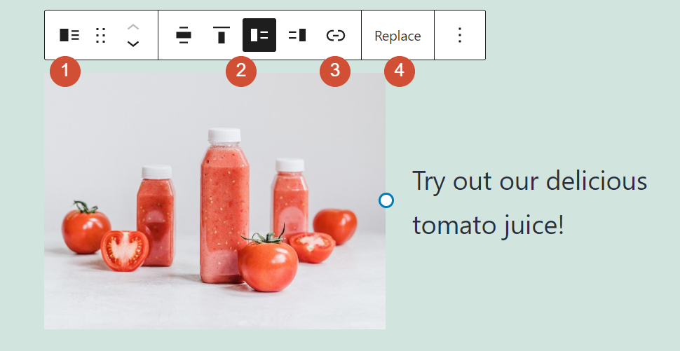 与图片区块不同,媒体和文本元素的格式工具栏不包括用于编辑图像的选项。但是,我们将在一分钟内向您展示如何进一步调整您的图片。
