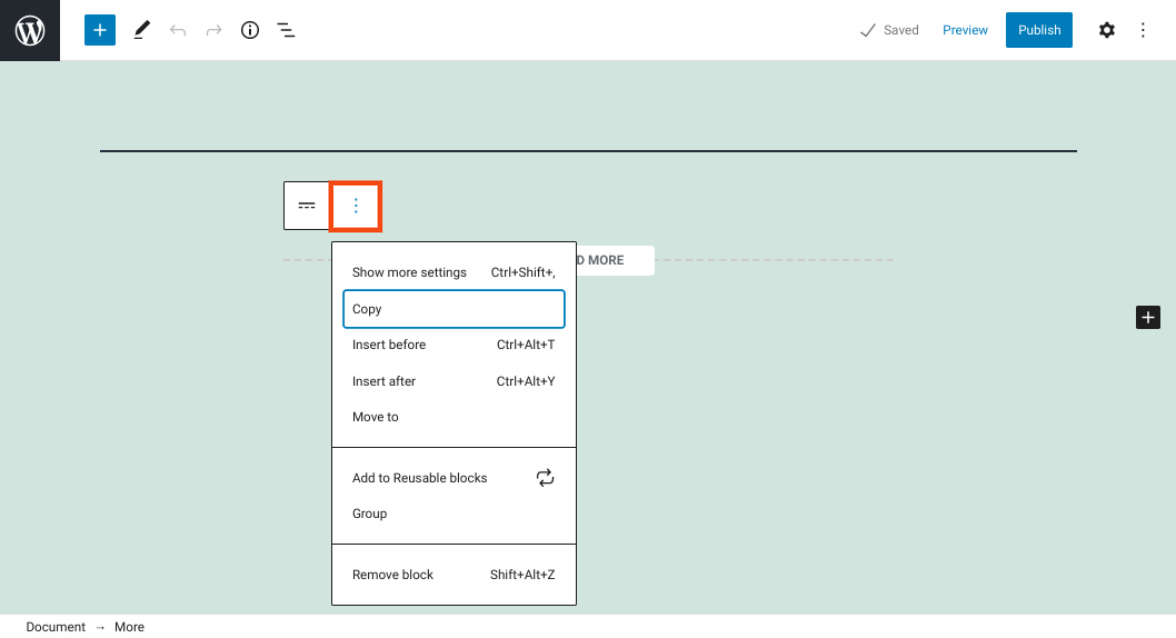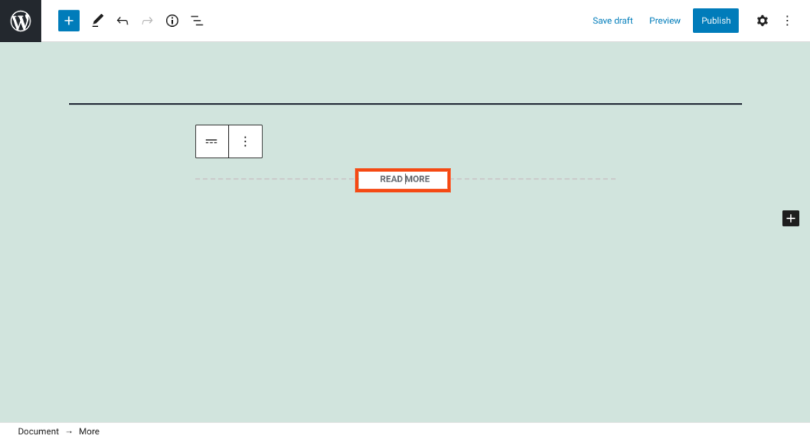或者,您可以通过在段落块中键入“/more”来找到它。然后按 Enter自动将此元素插入文章中。